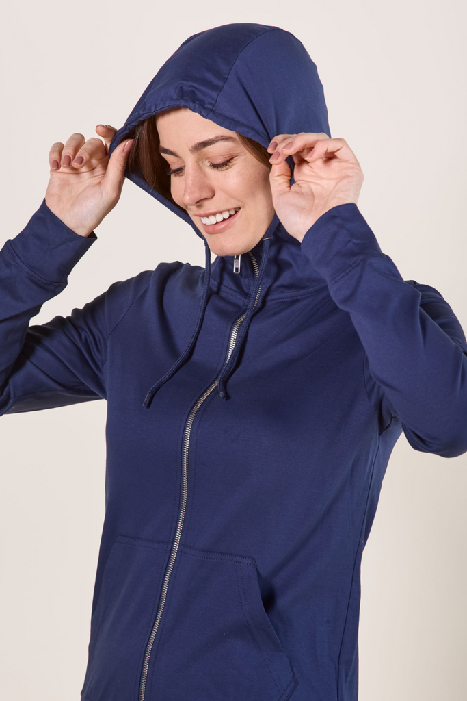 Sweat à capuche anti-UV femme zippé - Bleu Océan - Nuvées