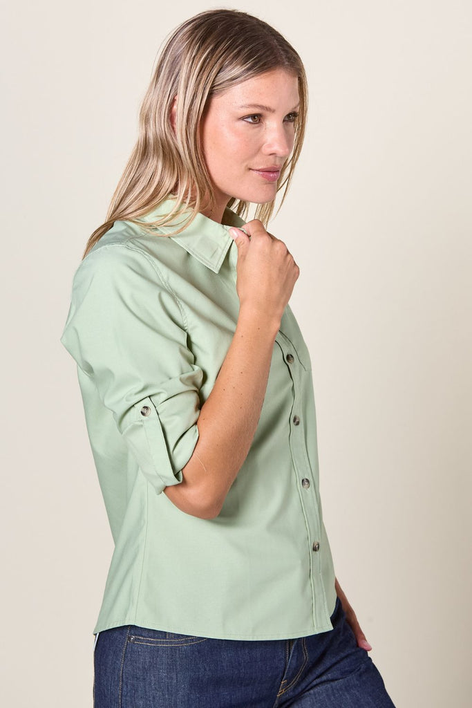 Our anti-UV shirt for women , in its Fresh Grass shade , combines effective sun protection and casual elegance, adding a bright touch to your days outdoors.